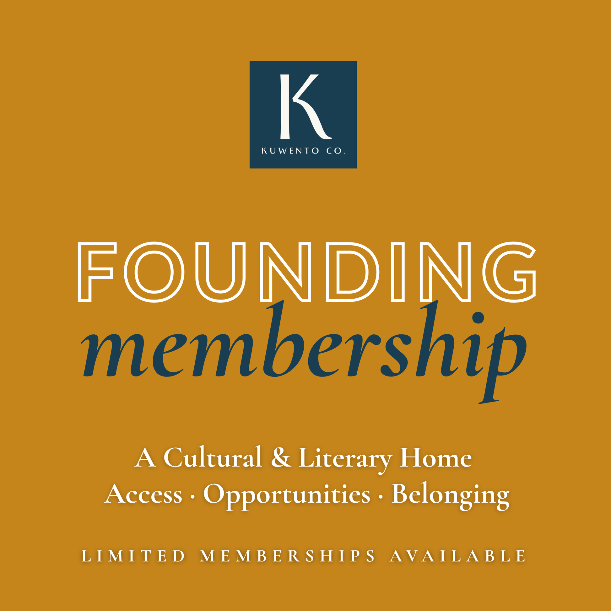 The Founding Membership supports the creation and sustainability of Kuwento Co., a cultural and literary home for stories rooted in family, culture, memory, and lived experience.